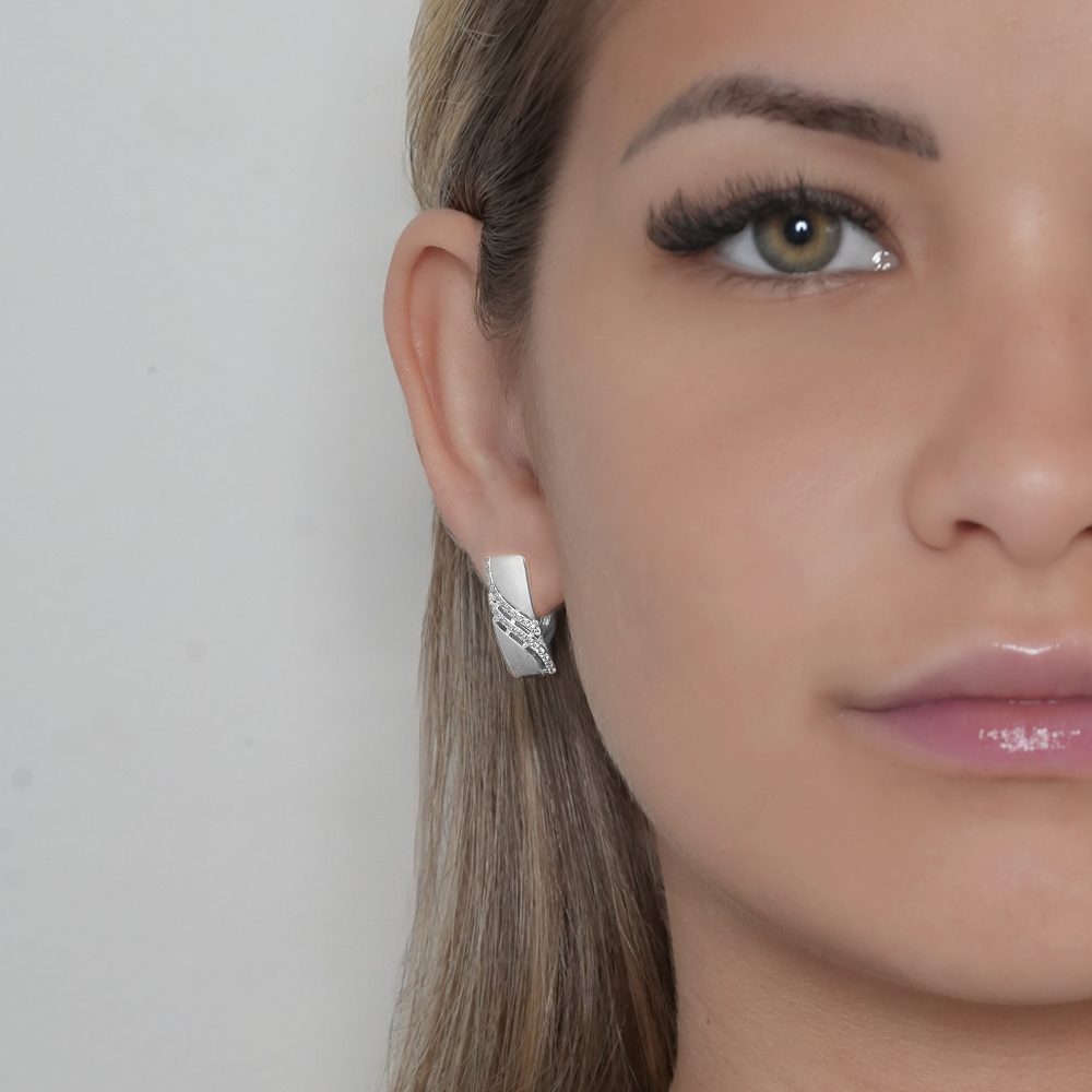 Brinco Articulado Ondas Cravejado no Ouro Branco com Zircônias – Sofisticação e Modernidade