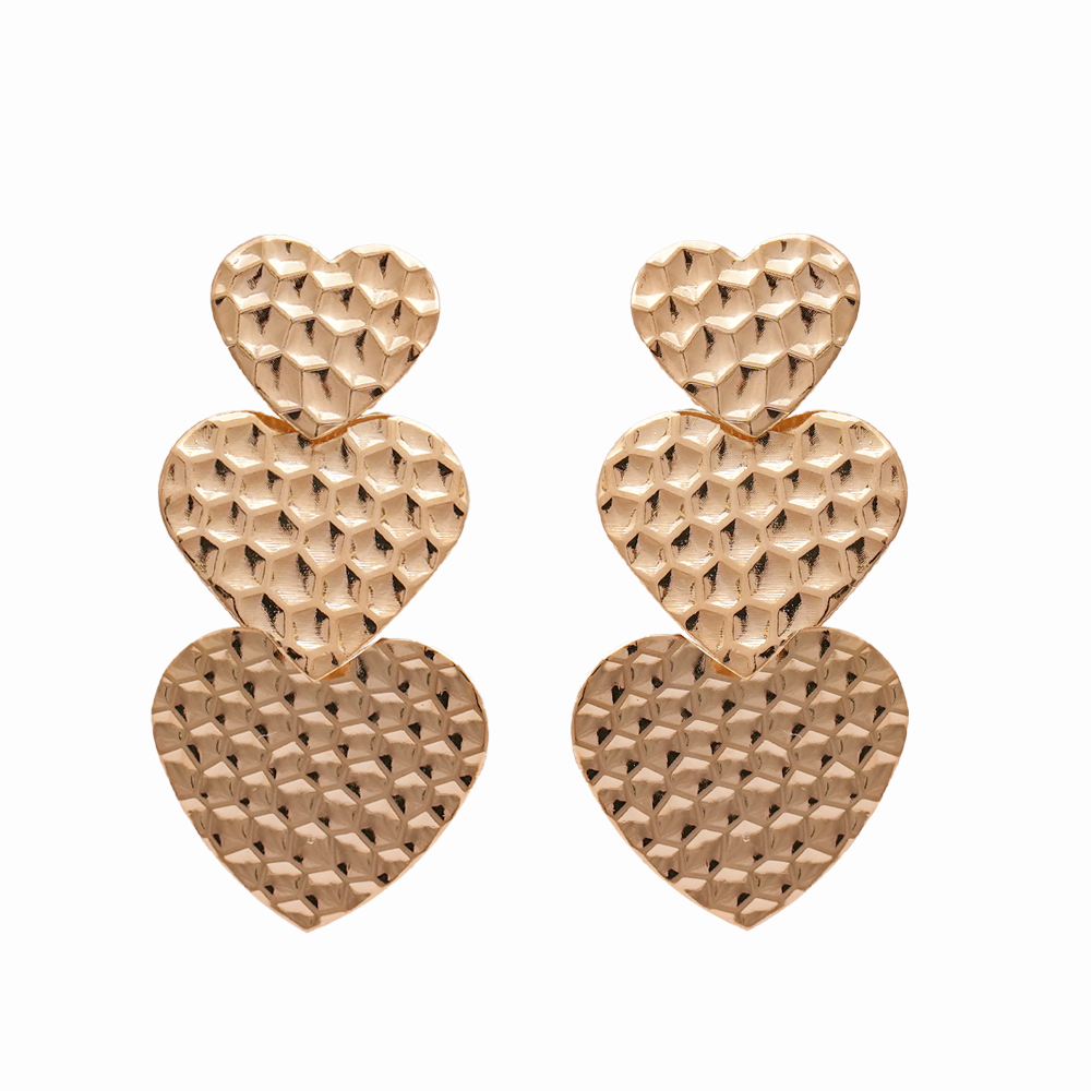 Brinco Três Corações Texturizados – Romantismo e Brilho Sofisticado