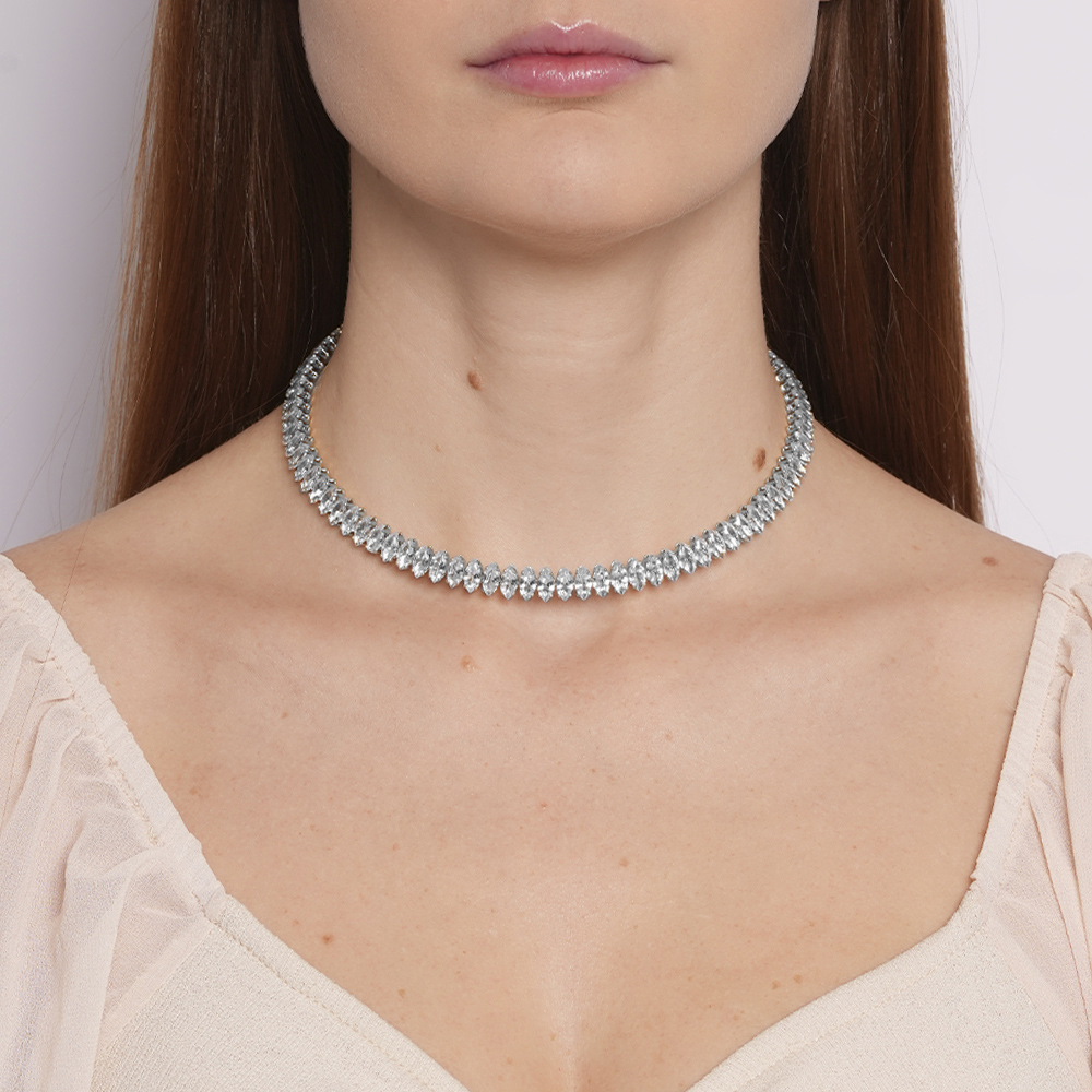 Choker Navetes Cristal Banhada a Ouro Branco- Luxo e Brilho