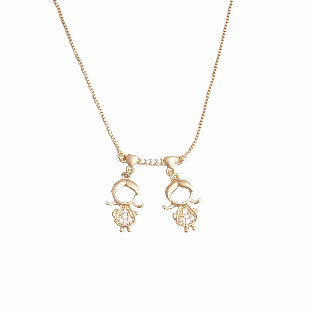 O Colar Filhas possui um design delicado com dois pingentes em formato de meninas que representam amor, carinho e a conexão especial entre mãe e filhas. Os detalhes em zircônias trazem brilho suave, deixando a peça ainda mais encantadora e cheia de significado.