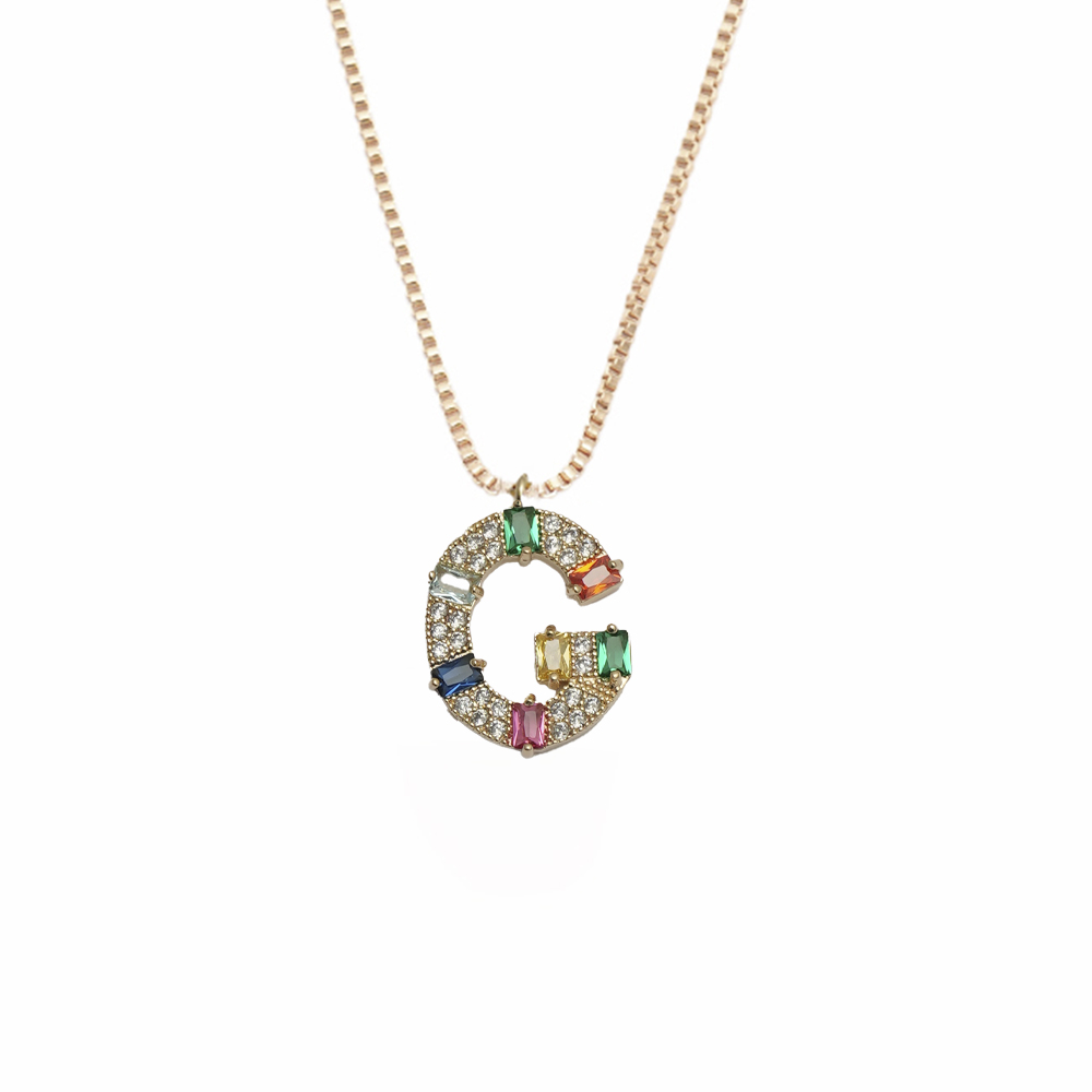 Colar Letra G com Zircônias Coloridas no Ouro 18K – Personalidade, Cor e Brilho