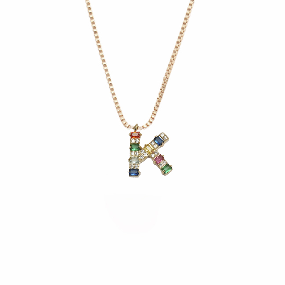 Colar Letra K com Zircônias Coloridas no Ouro 18K – Personalidade, Cor e Brilho