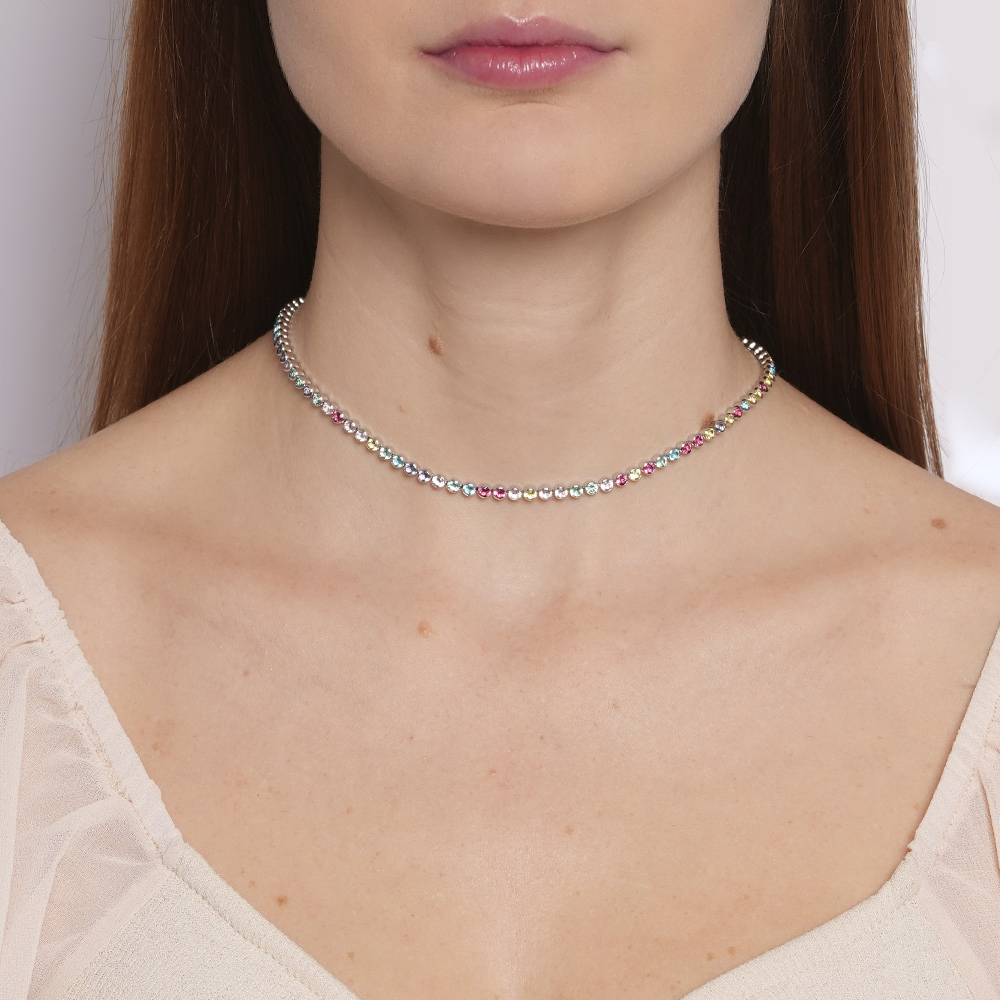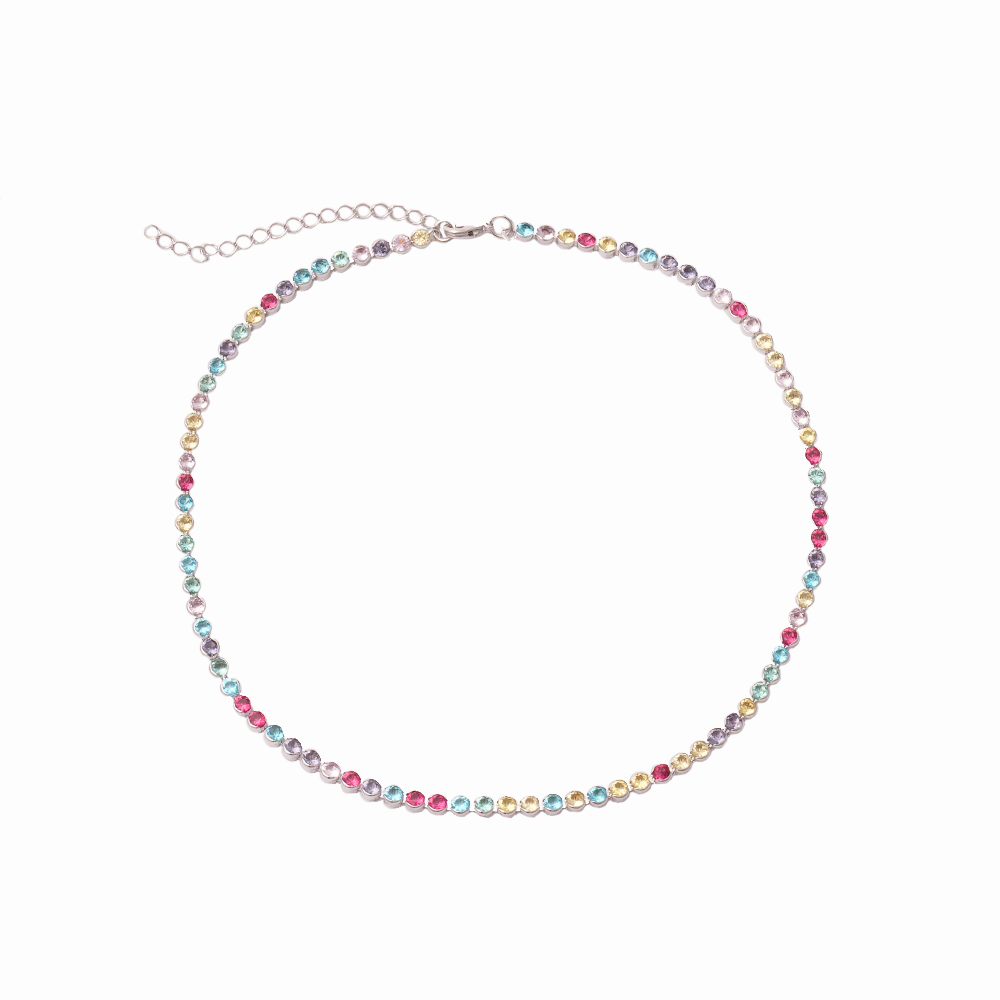 O Colar Riviera Fina banhado a ouro branco é a peça perfeita para quem busca elegância e sofisticação. Com um design minimalista e atemporal, este colar apresenta uma fileira de pedras coloridas que refletem a luz de forma delicada, criando um visual refinado e glamouroso. Seu banho em ouro branco confere durabilidade e um brilho intenso e prateado, tornando-o ideal tanto para eventos especiais quanto para o dia a dia. Combine-o com outros acessórios finos ou use-o como peça única para destacar seu look com elegância discreta.