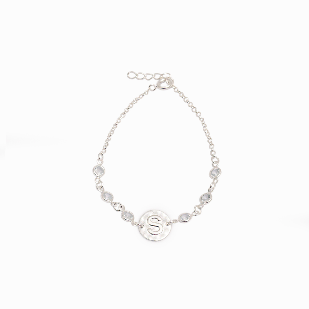 Pulseira Letra S em Prata com Detalhes em Zircônias Cristais – Elegância Personalizada